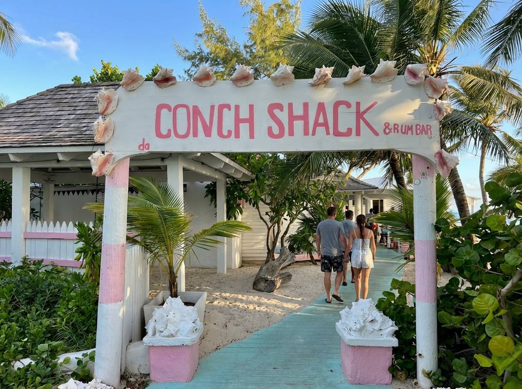 This is an iconic spot where you can eat with your toes in the sand. It is colorful, friendly, and authentic. You can watch them harvest the conch right from the ocean and prepare it fresh. It is the perfect place to try cracked conch or fresh conch salad.