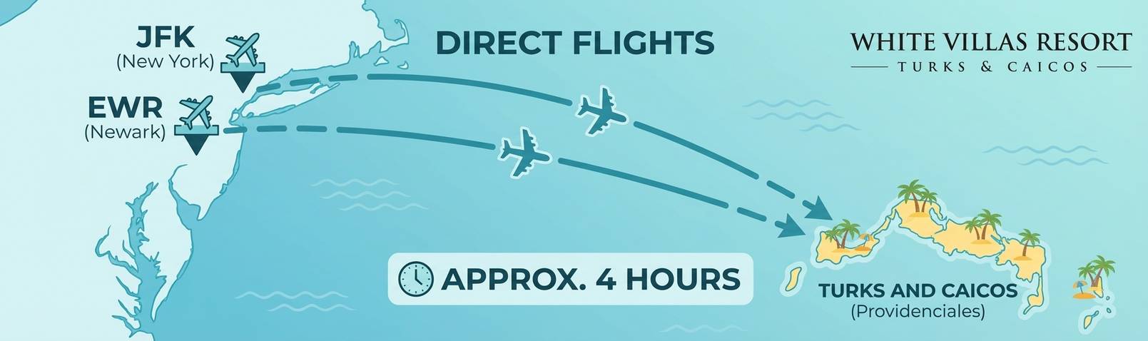 Getting from New York to Turks and Caicos is incredibly simple. Many major airlines offer direct flights every single week. You can fly nonstop from John F. Kennedy International Airport or Newark Liberty International Airport. The flight takes under four hours. This makes it perfect for a long weekend or a full family vacation.