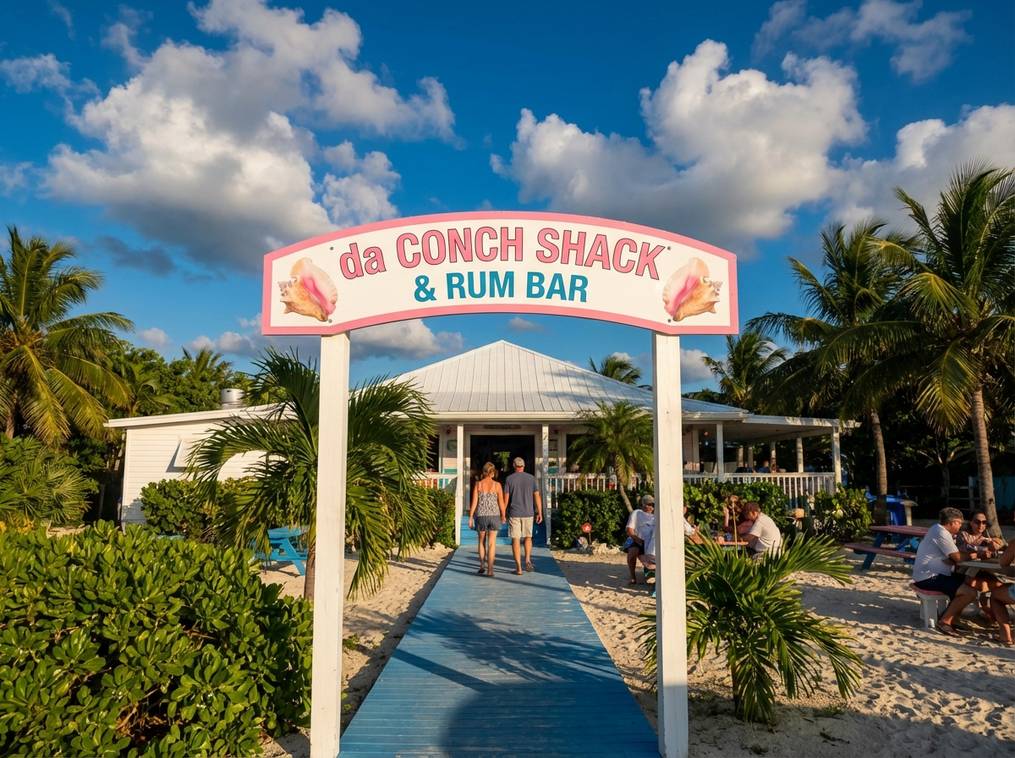 If you want a fun, casual lunch, this is a local icon. You sit right on the beach with your toes in the sand. It is a great place to try fresh conch fritters and enjoy a rum punch together.