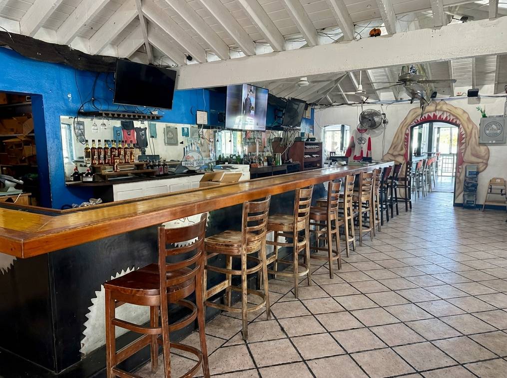 Located in Turtle Cove, this spot sits right on the water. You can see boats coming and going. Sometimes you can even see sharks swimming in the water below the deck. The food is tasty and the atmosphere is very relaxed.