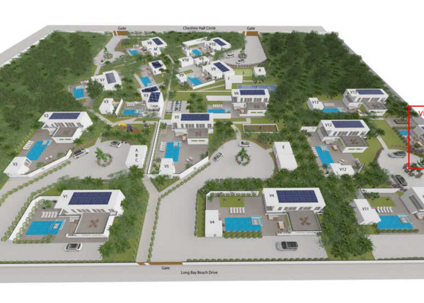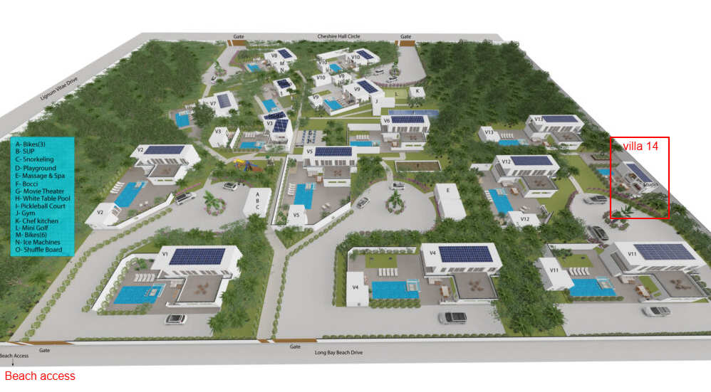 The Long Bay area is sparsely populated and home to just a few private villas, yet less than 5 minutes away from the Island's grocery stores, restaurants, golfing, tennis courts, marinas, casinos and other attractions.