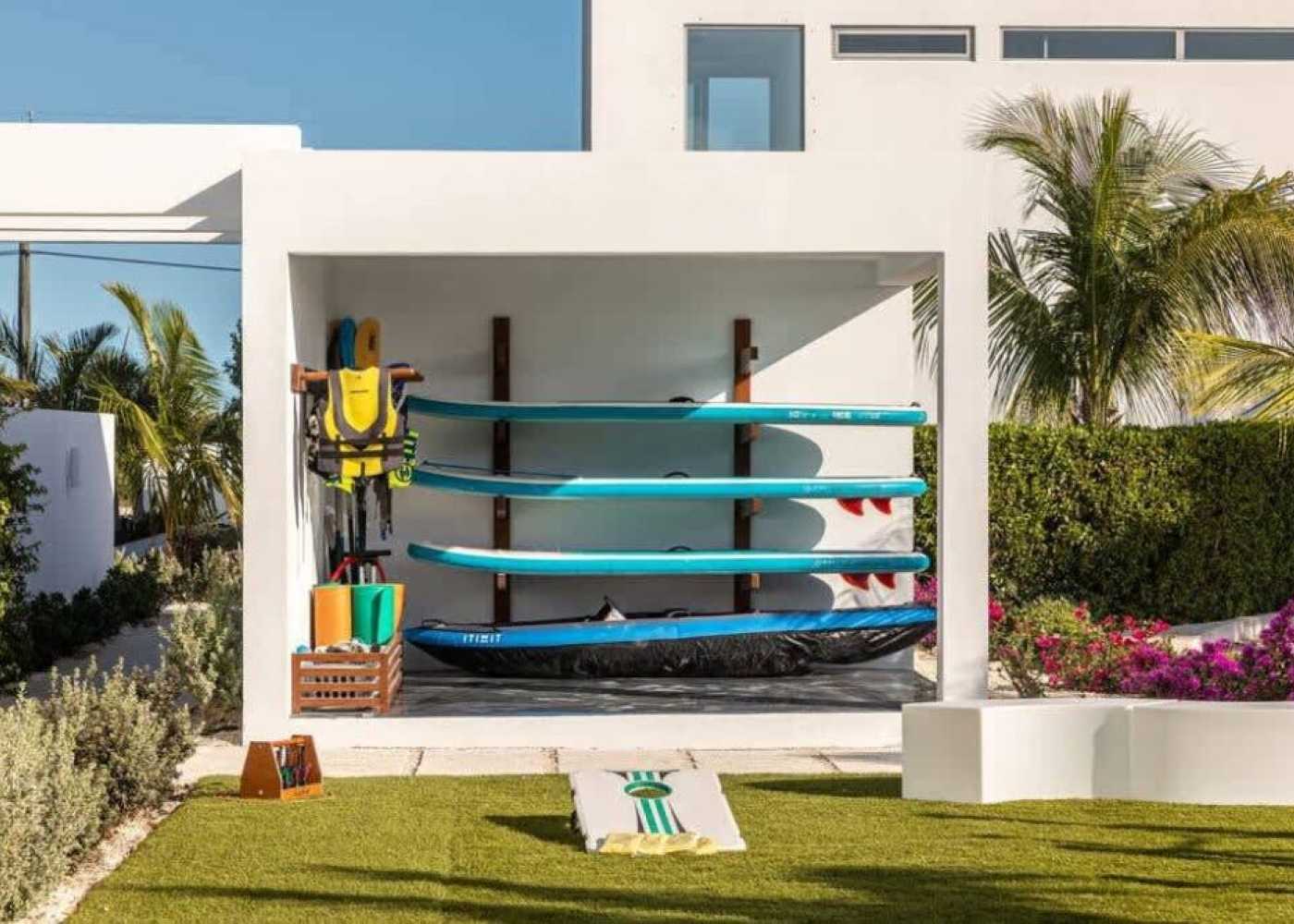 I loved that the house is truly just a 5 min walk away from the beach using the small beach path. My favorite part was being able to walk out to such a quiet beach and have a picnic bench with beach chairs, kayaks, and paddle boards available for your use. We didn’t end up using the bikes or anything that was back in the common area of the villa but it was nice to know they were there.