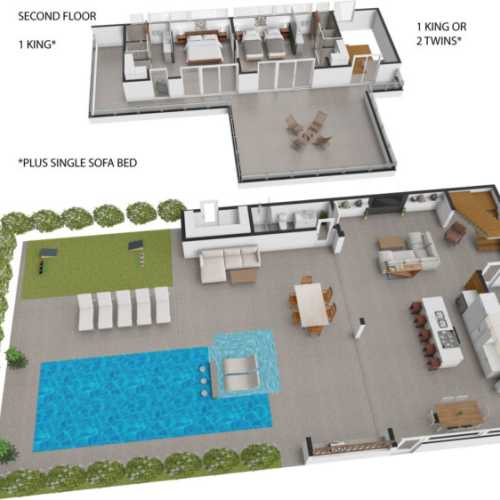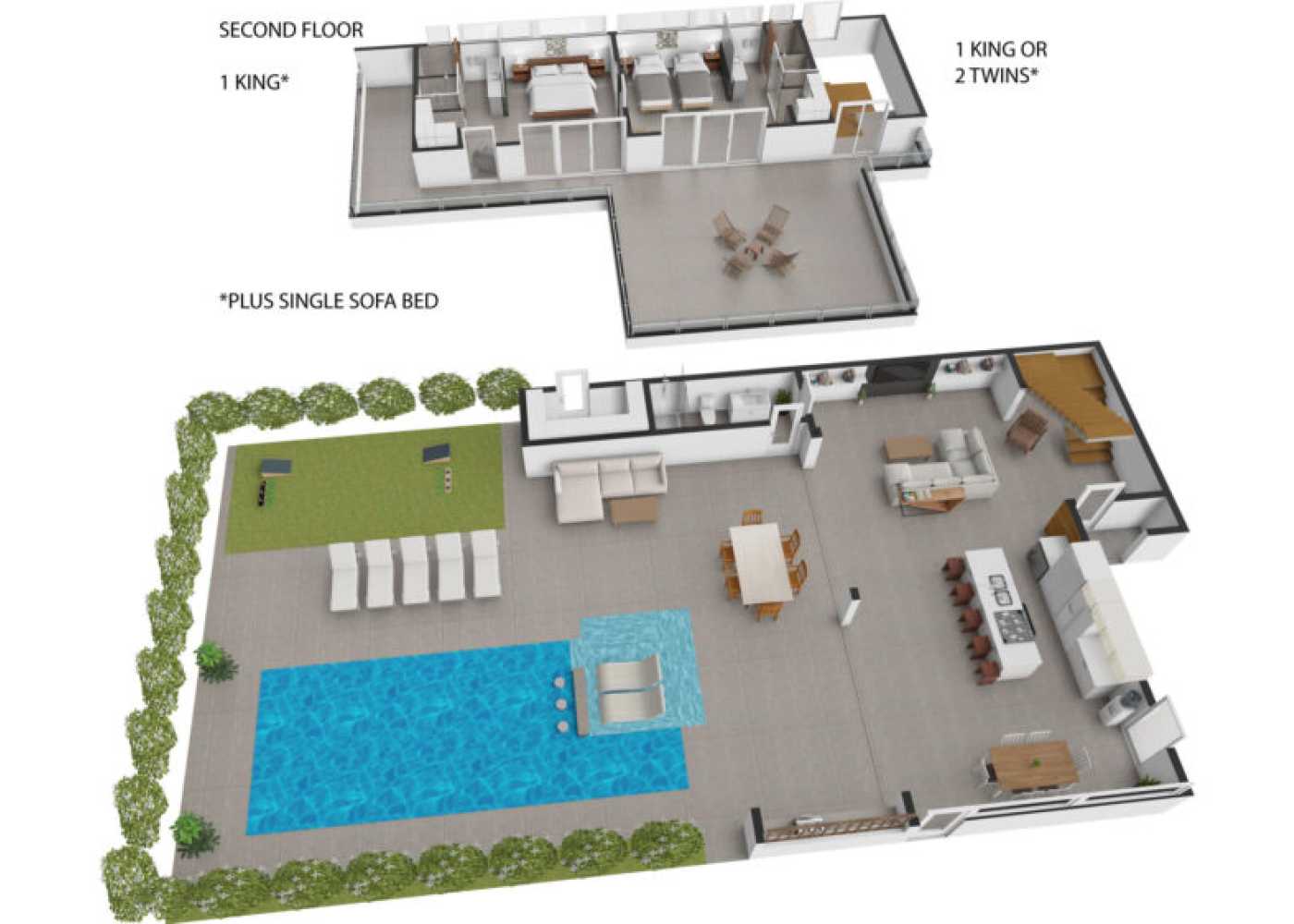 - Bedroom 2 : 2 twins or 1 king (plus a single sofa bed)