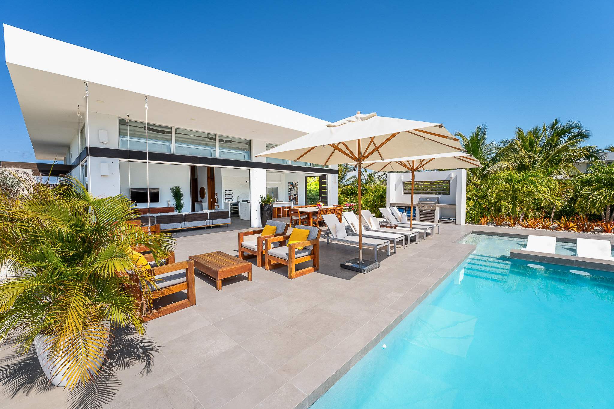 WHITE VILLAS (9) is a modern 4-bedroom, 5-bathroom retreat just a 3-minute walk from Long Bay Beach and 5 minutes from Grace Bay. Sleeping up to 10 (8 adults + 2 young kids), it combines the privacy of a luxury villa with resort-style amenities. Integrated in the 15-villa WHITE VILLAS collection, it offers the upscale comforts and personalized service of a 5-star hotel—without the crowds or compromises. Ideal for beach lovers seeking space, style, and barefoot luxury in Turks & Caicos.