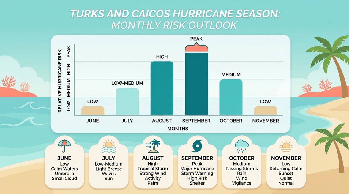 The Atlantic hurricane season runs June 1 through November 30, and Turks and Caicos sits inside that window like every other Caribbean destination. That is six full months on the calendar, and most of them carry very little risk.
